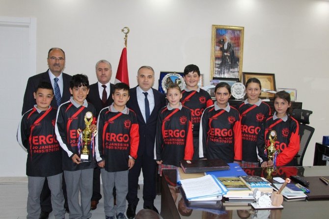 Manisa’da yapılan küçük erkekler ve küçük kızlar masa tenisi il birinciliği müsabakalarında dereceye giren Gökçeören Ulupınar Ortaokulu öğrencileri Kula Kaymakamı Kemal Duru’yu makamında ziyaret ederek sevinçlerini paylaştılar.