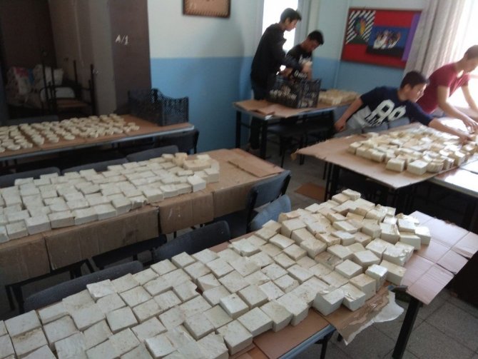 İzmir’in Aliağa ilçesindeki Helvacı Ortaokulu’nda ve Helvacı İlkokulu’nda sıfır atık projesi kapsamında atık kağıt, plastik, cam metal, pil ve kullanılmış sıvı yemek yağları toplandı ve doğal sabun elde edildi.