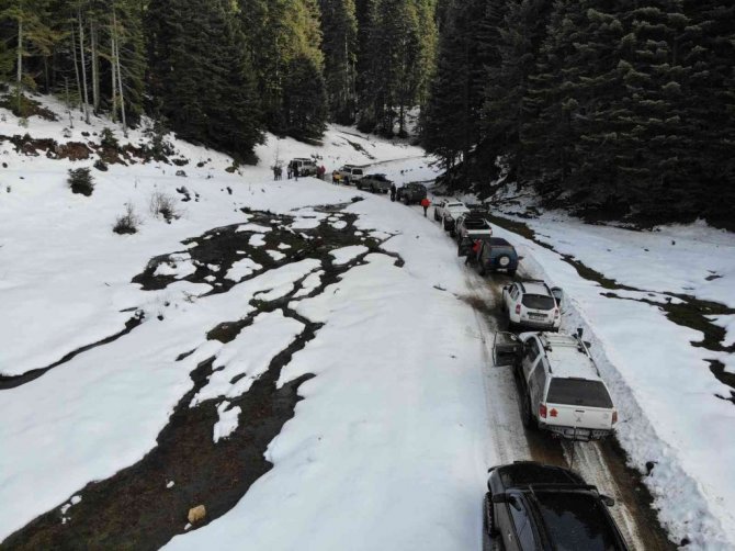 road ekipleri girdi. Üniversite öğrencileri, off-road araçları ile yaylalara ulaştırılarak, kar safarisi yapıldı.