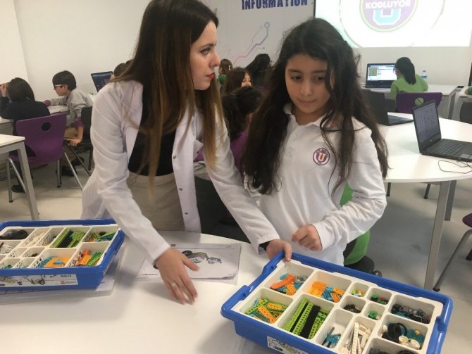 Bilgisayarda kodlama yaptıklarını söyleyen Uğur Okulları 5’nci sınıf öğrencisi Barkın Tuna Erginbaş, “Oyun tasarlıyoruz, legolarımızı birleştirerek robotlar yapıyoruz. Robotlarımızı kodlayarak onlarla yarışlar düzenliyoruz. Kardeş okulumuzdaki öğrenci arkadaşlarımız ile çok iyi anlaşıyoruz. Hem oyunlar oynayıp hem de projeler yapıyoruz. Derslerde öğrendiklerimizi onlara öğretiyoruz, onlarla güzel bir çalışma elde ediyoruz” dedi.