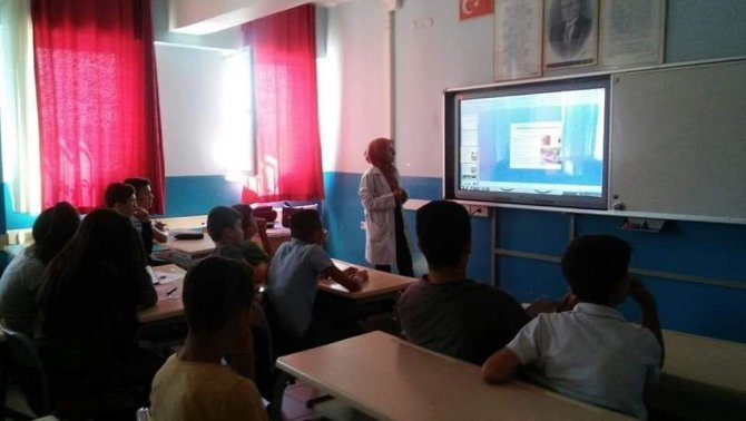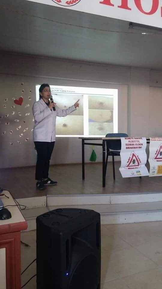 Kula İlçe Sağlık Müdürlüğü bulaşıcı hastalıklar biriminde görevli personel Sibel İsmihan tarafından Atatürk İlkokulu, İbrahim Özboyacı Mesleki ve Teknik Anadolu Lisesi ve Naci Hakkı Ulusoy İlk ve Ortaokulu’nda verilen seminerde, KKKA Hastalığı virüsü taşıyıcısı olan kenelere karşı korunma tedbirleri ve hastalık belirtileri anlatıldı.