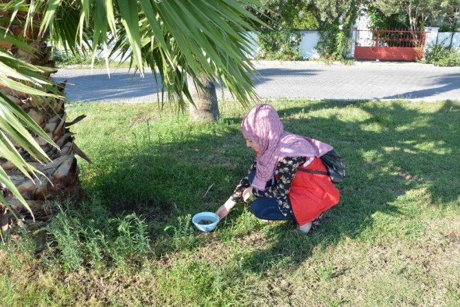 Ardından Köyceğiz Kordonunda toplanan öğrenciler, sokak hayvanlarının su içebilmeleri için hazırladıkları kapları kordon boyunca dağıttı.