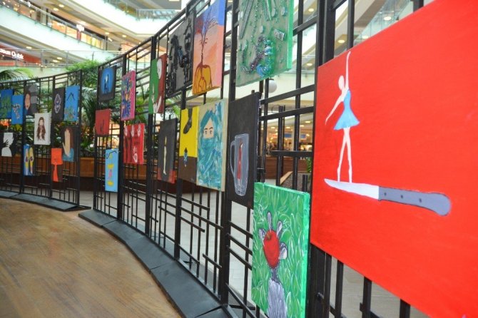 Öğrenciler tanık olduğu kadına şiddet olaylarını resmedip sergi açtı