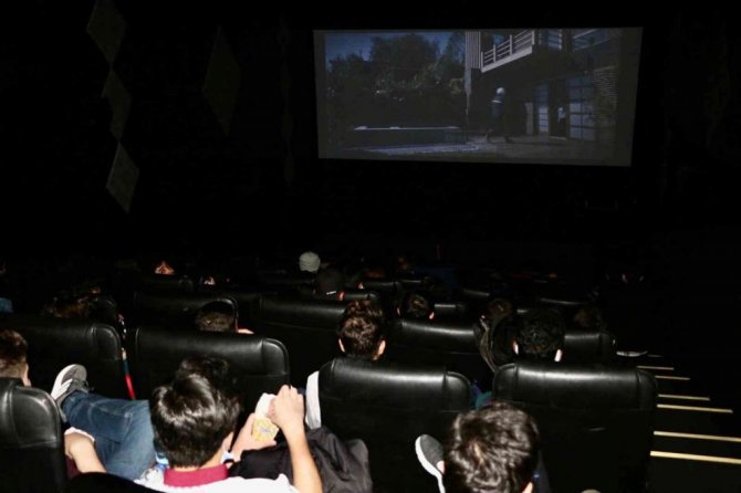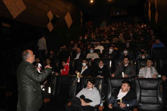 Öğrenciler Türk bayraklarıyla sinemada "Kesişme: İyi Ki Varsın Eren"i izledi