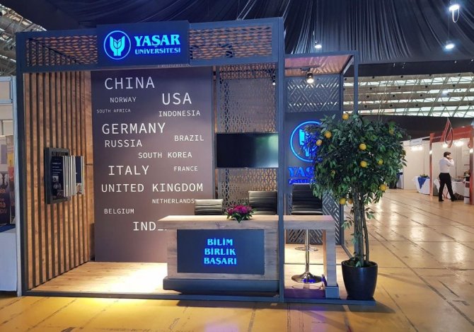 Yaşar Üniversitesi’nin yurtiçi ve yurtdışındaki eğitim fuarlarında kullandığı stant da Mimarlık Fakültesi İç Mimarlık ve Çevre Tasarımı Bölümü öğrencileri tarafından tasarlandı. Üçüncü sınıf İç Mimarlık Stüdyosu dersi kapsamında, öğrenciler Çisem Didem Tetik, İnci Onuş, Sevim Asel Atay, Nurefşan Sönmez ve Ukbe Yazar tarafından tasarlanarak hayata geçirildi. Farklı ve modern çizgisiyle dikkat çeken, metal ve ahşap ürünlerin kullanıldığı stant, kullanılmaya başlandı.