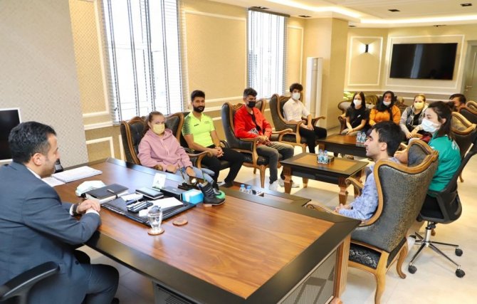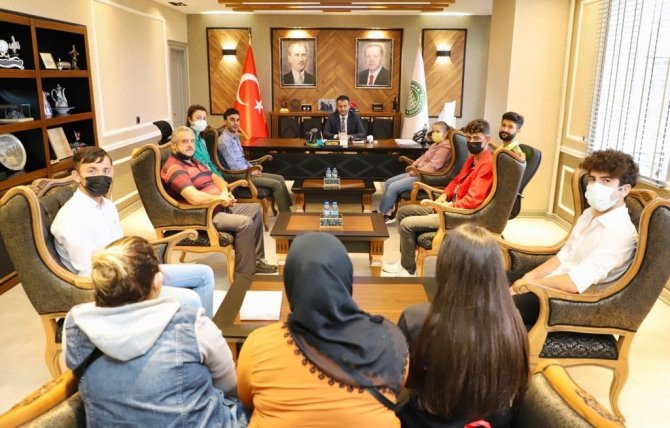 Çarşamba Belediyesi Spor Akademisi Hazırlık Kurslarında eğitim alarak Beden Eğitimi ve Spor Yüksekokulu'nu kazanan 10 öğrenci, Çarşamba Belediye Başkanı Halit Doğan'ı makamında ziyaret ederek vermiş olduğu katkılardan dolayı Başkan Doğan'a teşekkür etti.