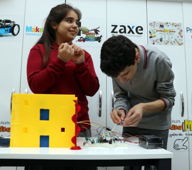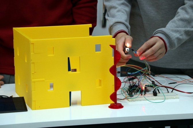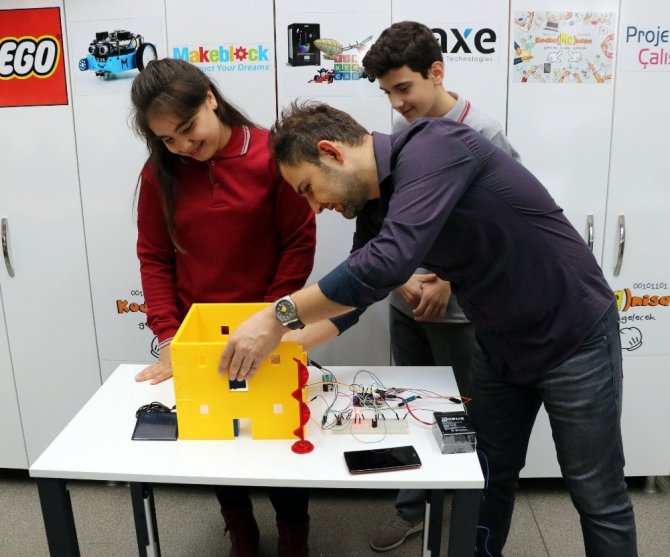 Evde bile proje üzerinde çalıştığını sözlerine ekleyen Çakır, "Eve gittiğimizde ben bu maketi yapmak için Tinkercad adlı programı kullandım. Tabi böyle sürekli okulda çizemeyeceğim için evde kendi bilgisayarımla çizdim. Sistemimizin tüm kapalı alanlarda kullanılmasını istiyoruz" diye konuştu.