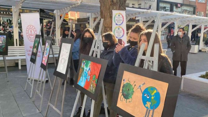 Öğrencilerden Pandemi konulu resim sergisi