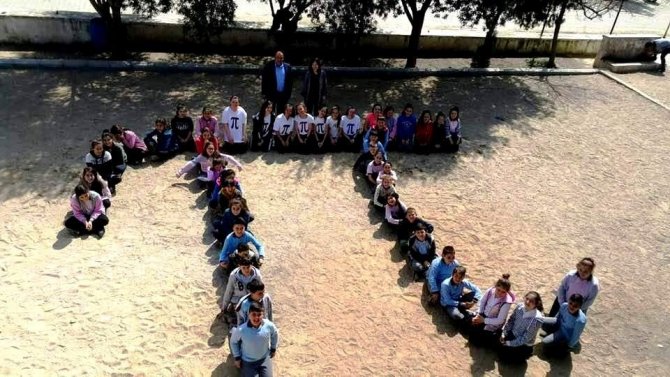 Sarıgöl Çanakçı Ortaokulu öğrencileri matematik öğretmenleri Güllü Gökdere Ateş tarafından Pİ sayısının önemini çocuklara kavratmak için, Pi sayısının sembolü olan işaretli tişörtler giydirerek bahçede Pi sayısının simgesini ifade eden mizansen yaptırdı. Hazırlanan broşürlerde yapılan kek, pasta ve revani tatlılarının üzerine de çocuklar tarafından Pi sayısının sembolü yapıldı. Çanakçı Ortaokulu matematik öğretmeni Güllü Gökdere Ateş tarafından Pi sayının matematikteki önemi anlatıldıktan sonra hazırlanan tatlılar birlikte afiyetle yenildi.