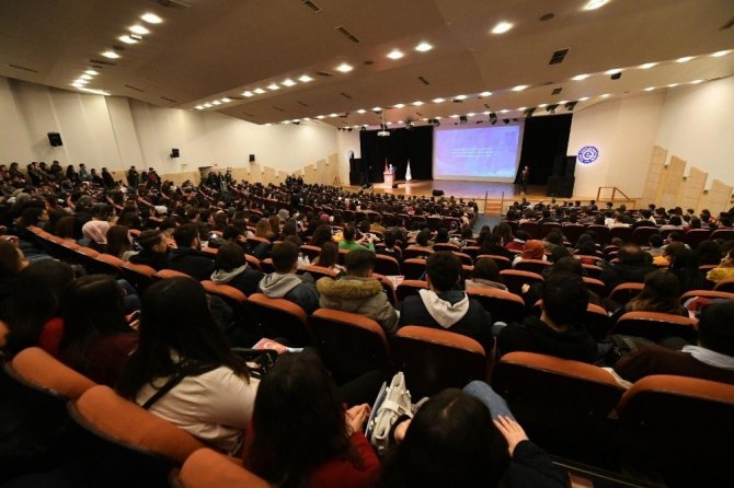 EÜ Prof. Dr. Yusuf Vardar MÖTBE Kültür Merkezinde EÜ Öğrenci Bilgilendirme Toplantısı düzenlendi. Toplantıya, EÜ Rektörü Prof. Dr. Necdet Budak, rektör yardımcıları, dekanlar, yüksekokul ve enstitü müdürleri, akademisyen ve öğrenciler katıldı. Öğrencilerin tıklım tıklım doldurduğu salonda konuşan Rektör Budak, dünya kavrayışına yön veren kurumların başında üniversitelerin geldiğini belirtti. EÜ’nün 63 yıllık geçmişiyle Türkiye’nin en köklü üniversitelerinden biri olduğuna değinen Rektör Budak, “Üniversitemiz önemli bilgi birikimine ve bilimsel geleneğe sahip. Biz de bu geleneği esas alarak birçok alanda çalışmalar yürüttük ve yürütmeye devam ediyoruz. Bu çalışmalardan biri de öğrenciyi ve sorunlarını merkeze alan bir anlayışı yerleştirmek oldu. Ayrıca üniversitemizi daha kaliteli, yaşanabilir ve güvenli bir hale getirmeye çalıştık” dedi.