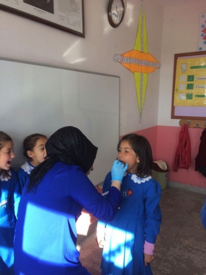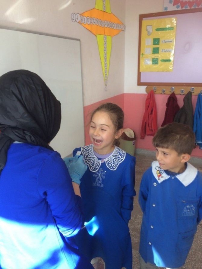 Toplamda 36 öğrenciye ağız diş taraması yapılan etkinlikte, 115 öğrenciye de flor jel uygulandı.