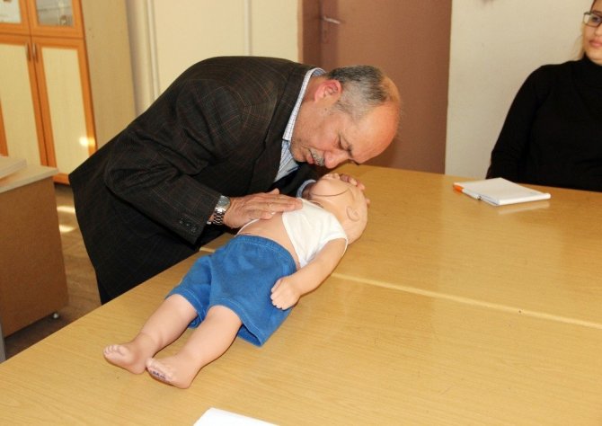 Manisa’nın Şehzadeler ilçesindeki Şehitler Ortaokulu Okul Aile Birliği üyeleri ve sınıf anneleri öğrencilerin okulda veya günlük yaşamda karşılaşabilecekleri yaralanmalara veya acil durumlara ilk ve doğru müdahaleyi yapabilmek için Şehzadeler Halk Eğitim Merkezinden talep ettikleri İlk Yardım Kursuna katıldı. 25 velinin katıldığı kursla ilk ve doğru müdahale konusunda bilinçlenecek olan velilerin diğer okullara da örnek olması bekleniyor.