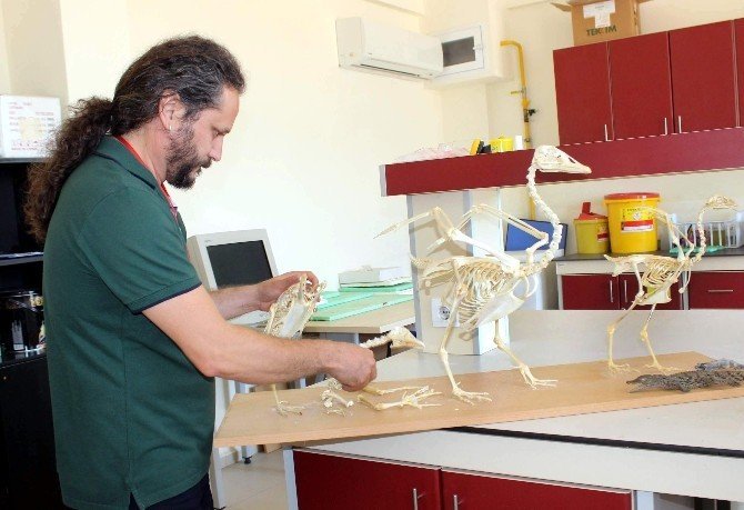 Adnan Menderes Üniversitesi’nin (ADÜ) fedakar öğretim üyeleri, geleceğin veterinerlerini en iyi şekilde yetiştirebilmek için kimsenin yanına bile yaklaşamadığı leşleri ayıklayarak doğal iskeletlerle ders yapıyor.