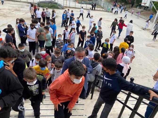 Öğrencilerin heyecanına ortak oldu