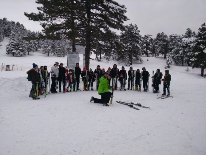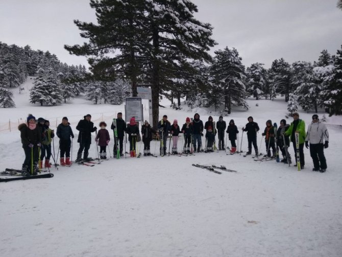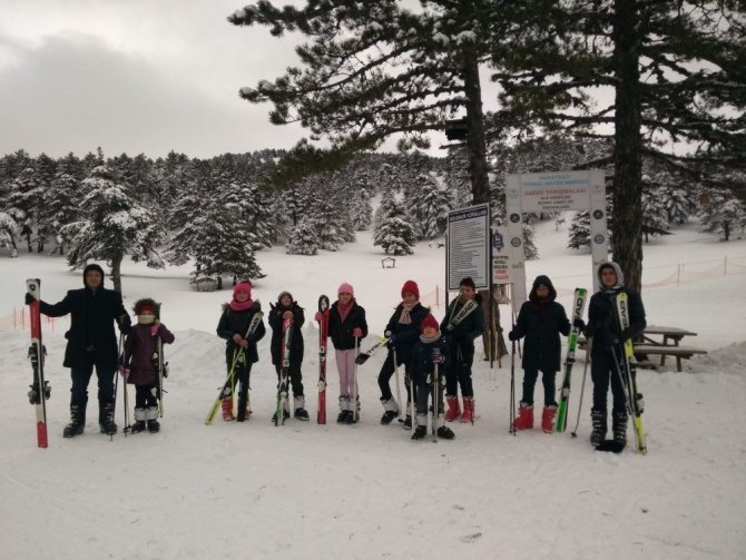 Öğrencilerin kayak keyfi