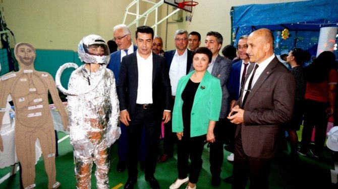 Davetliler Bilim Şenliği için hazırlanan 20 sergiyi gezerek, öğrencilerden bilgi aldı. Sarıgöl Kaymakamı Çetin Kılınç öğrencileri kutlayarak başarıların devamını temenni etti.