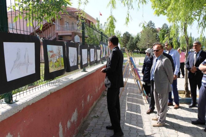 Sergi hakkında bilgi veren resim öğretmeni Zeynep Çakır, sergide görsel sanat derslerinde öğrencilerin çeşitli konularda, farklı tekniklerle yaptığı 150 eserin yer aldığını söyledi.