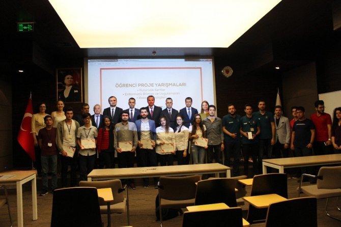 “125 mimarlık projesi geldi. Hepsini sergileme imkanımız yoktu. Çok sıkı bir incelemeden sonra 14 tanesine sergileme şansı tanıdık. Onları da eleyerek üç kişi seçtik. Robot yarışmalarında 14 tanesini yarışmaya uygun gördük. Enformasyonda da 19 başvuru oldu. Dört tanesini yarışmaya sunduk. Onun iki tanesi için patent kaydı teyidini aldık. Bu proje yarışmasında iki patent iki faydalı model var.”
