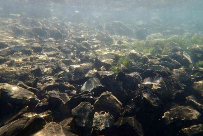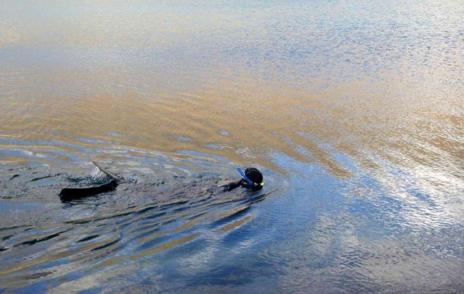 Su altındaki flora ve faunası da görüntüleyen Dr. Mert Elverici, göle gelişigüzel atılan naylon, kutu, olta gibi pislikleri de sudan çıkararak temizlik yaptı.