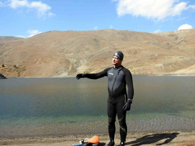 Öğretim üyesi Türkiye’nin en yüksek göllerinden biri olan Aygır Gölüne serbest dalış yaptı