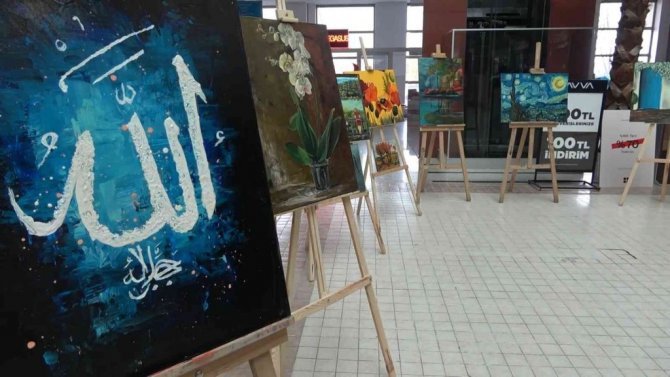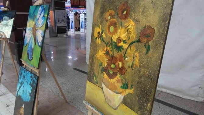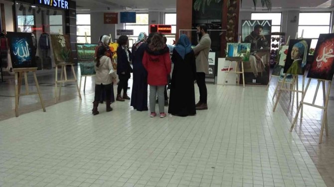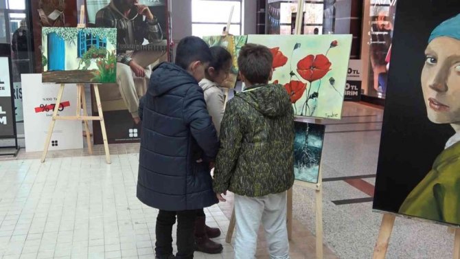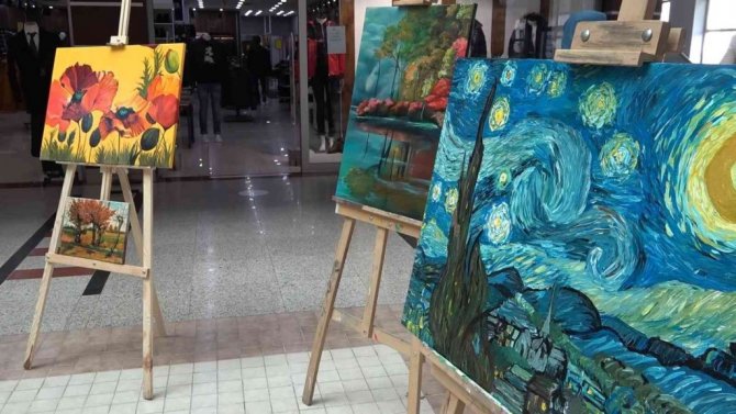 Öğretmen ve öğrencilerin açtığı resim sergisi ilgi odağı oldu