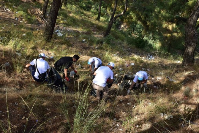 Öğretmenler orman yangınına sebep olabilecek atıkları topladı