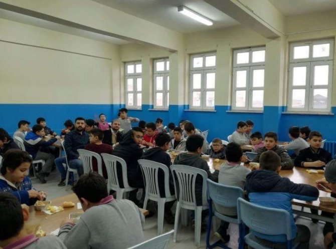 Kütahya’nın Çavdarhisar ilçesinde, öğretmenler öğrencilere okul yemekhanesinde sabah kahvaltısında çorba ikramında bulundu.