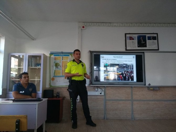 Pazarlar Emniyet Amirliği Trafik Şube Müdürlüğü yetkililerince verilen seminerde okullarda verilecek trafik eğitimlerinin çocuklar tarafından nasıl daha iyi kavranacağı ele alındı.