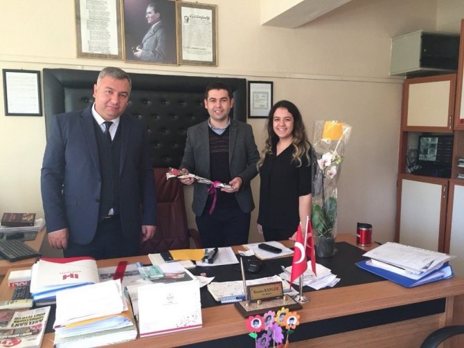 İlçedeki okulları tek tek ziyaret eden firma temsilcileri, öğretmenlerin günlerini kutlayarak karanfil ve çeşitli hediyeler verdi.