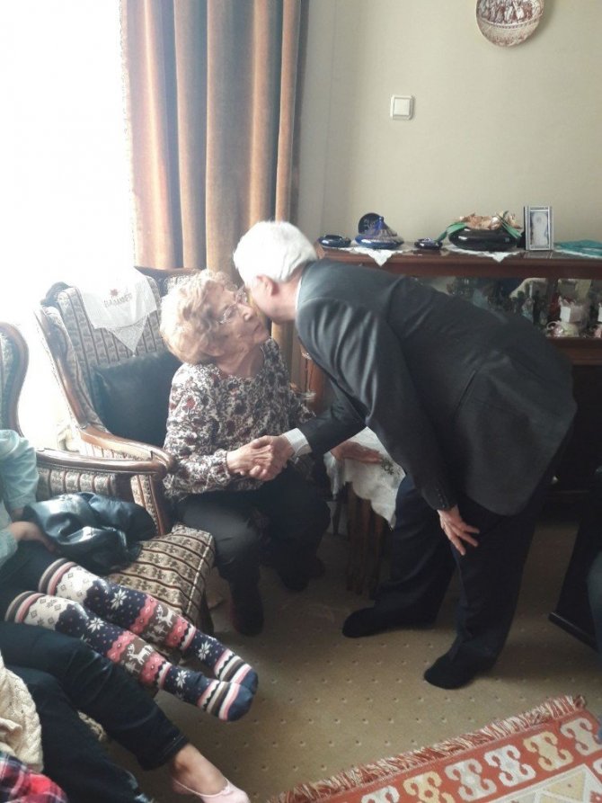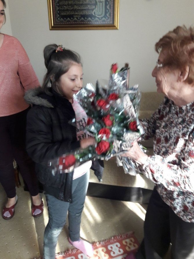 Öğretmenler Günü dolayısıyla gerçekleştirilen ziyarete katılan öğrenciler hem kendi öğretmenleri İsmail Pekçioğlu’nun hem de öğretmenlerinin ilkokul öğretmeni 79 yaşındaki Şefika Poyraz’ın Öğretmenler Günü’nü kutlayarak çiçek hediye etti.
