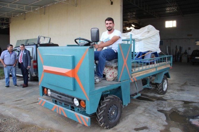 Umurlu’da sanayide metal ve plastik işleri ile uğraştıklarını belirten 22 yaşındaki Hasan Karakaplan, “Akranlarımız genelde akşamları ve hafta sonları grup kurup okey oynayarak vakit geçiriyor. Biz de arkadaşlarla okey masasında vakit öldürmek yerine bir şeyler üretmek için 2 yıl önce yola çıktık. Önce hem az yakıt yakan hem de tarım alanlarında daha verimli kullanılabilecek bir araç tasımı yaptık. Daha sonra aracı yapmaya başladık. Tamamen kendi ürünümüz olan bu araç ortaya çıktı. Baya uğraş verdik ama sonunda güzel bir ürün ortaya çıktı. Çekiş gücü, hızı ve kullanım kolaylığı nedeniyle araç oldukça beğenildi. Ne var ki ekonomik koşullar nedeniyle bürokratik işlemleri tamamlayıp seri üretim yapma imkanımız yok” diye konuştu.