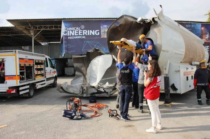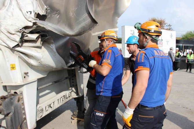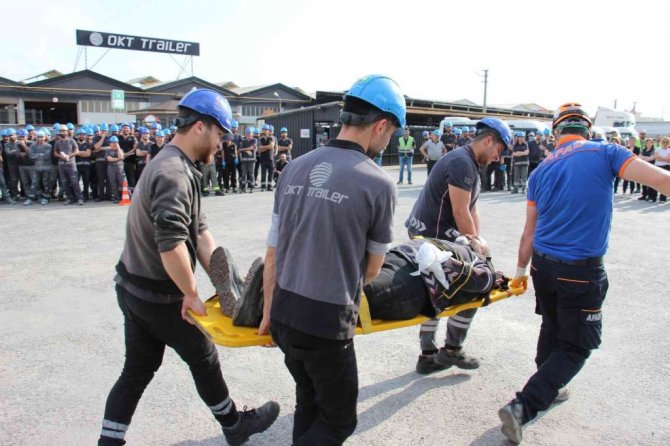 Aydın'da faaliyet gösteren ve dünyanın pek çok ülkesine ihracat yaparak ülke ekonomisine katkıda bulunan OKT Trailer firmasında gerçekleştirilen deprem tatbikatı gerçeğini aratmadı.