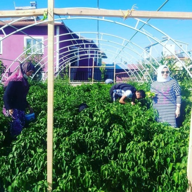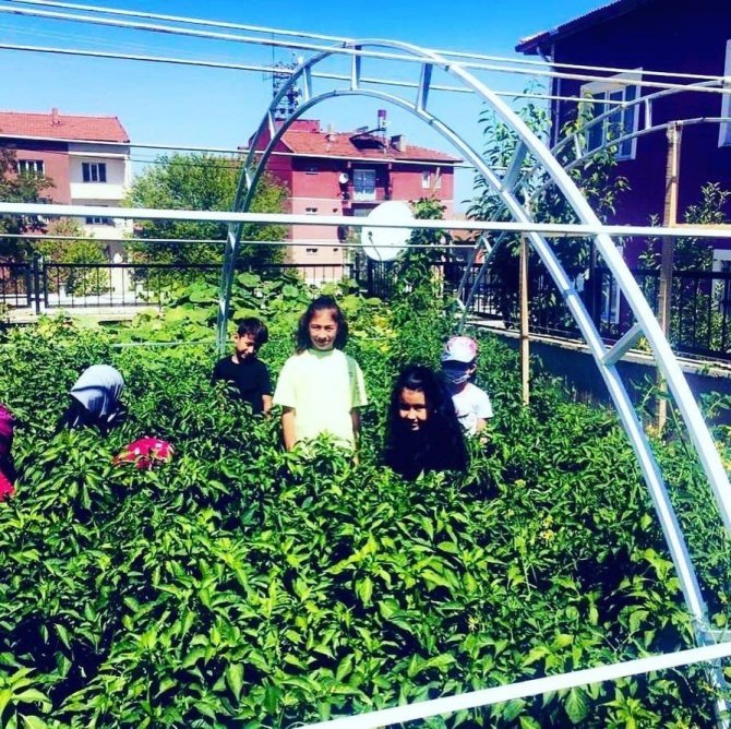 Okul bahçesinde yetiştirilen ürünlerin hasadı başladı