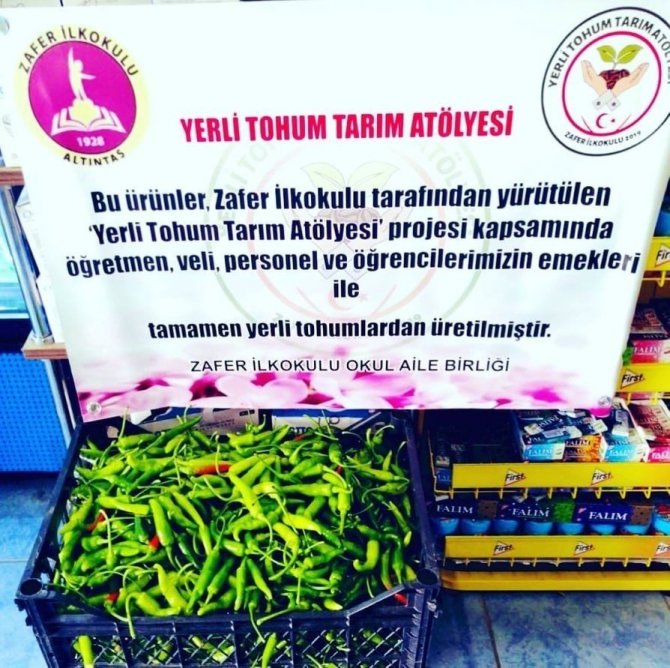 Projeye destek veren herkese teşekkür ettiğini belirten Zafer İlkokulu Müdürü Serdar Taşoğlu, "Yerli tohum tarım atölyesi projemiz kapsamında, okulumuzun arka bahçesinde 55 metrekaresi kapalı 445 metrekaresi açık olmak üzere 500 metrekarelik bir tarım alanı hazırladık. Tüm bu tarım alanını öğrencilerimize, sınıflar bazında eşit alanlar dahilinde bölerek, uygulama alanları şeklinde kullanımlarını sağladık. projemiz kapsamında domates, biber, salatalık, mısır, balkabağı gibi 16 çeşit yerli tarım ürününü çocuklarımızla tanıştırdık. Bu yılki çalışmalarımız neticesinde 300 kilogram yeşil biber, 3.5 ton domates, 300 kilogram patlıcan başta olmak üzere, diğer tüm ürünlerimizle birlikte 6 ile 7 ton aralığında ürün hasat etmeyi bekliyoruz. İlk ürünlerimizi hasat ettik. Satış yapmaktan ziyade vatandaşlarımızın bağış bırakmasıyla ürünlerimizi elimizden çıkarmaya başladık. Okul aile birliği yönetim kurulu tarafından toplanan bağışlar, okul-aile birliği hesabına yatırılacak ve eğitim-öğretim yılı boyunca öğrencilerimizin istek ve talepleri doğrultusunda kullanılmak üzere tüm sınıflara eşit miktarda pay edilerek tahsis edilecek" dedi.