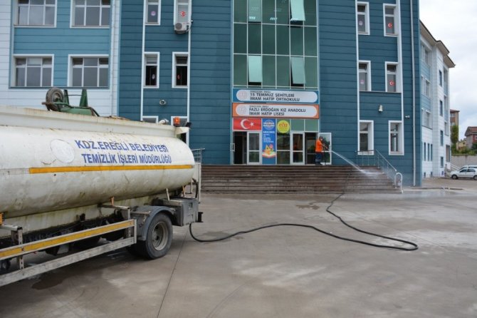 Zonguldak'ın Ereğli İlçe Belediyesi, 2021-2022 eğitim-öğretim dönemi öncesi ilçedeki okullarda yıkama, tırpan ve çevre düzenleme çalışması yaptı. İhtiyaç duyulan okullarda dezenfekte ve tamirat işleri yapılarak okullar öğrenci ve öğretmenlere hazır hale getirildi.