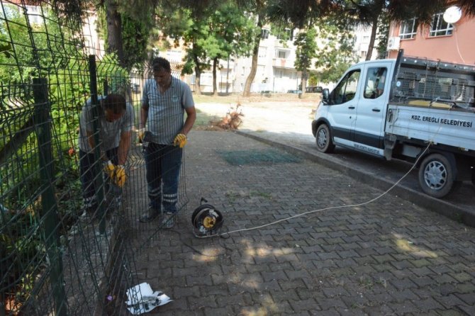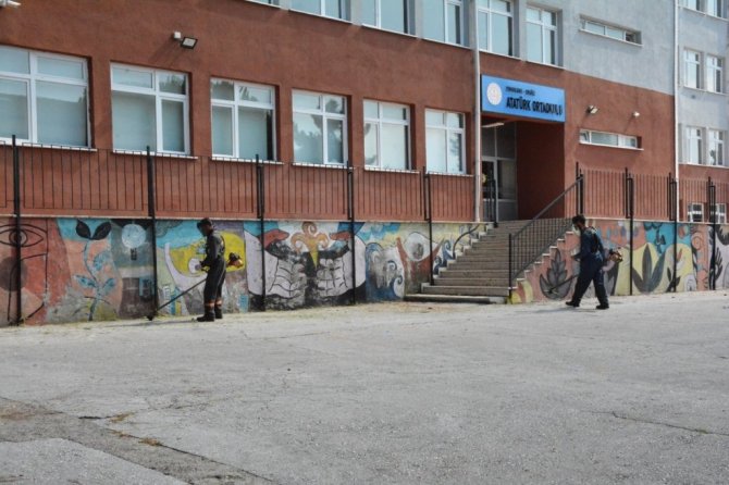 Fen İşleri Müdürlüğü ekipleri de okul çevresindeki tel örgülerde tamirat işleri yaptı. Milli Eğitim Müdürlüğü ve okul müdürlerinden gelen talebe göre Veteriner İşleri Müdürlüğü ekipleri Saniye Erdoğan Anaokulu bahçesinde dezenfekte, Kışla Mahmut Likoğlu Ortaokulu çatısında ilaçlama çalışması yaptı.