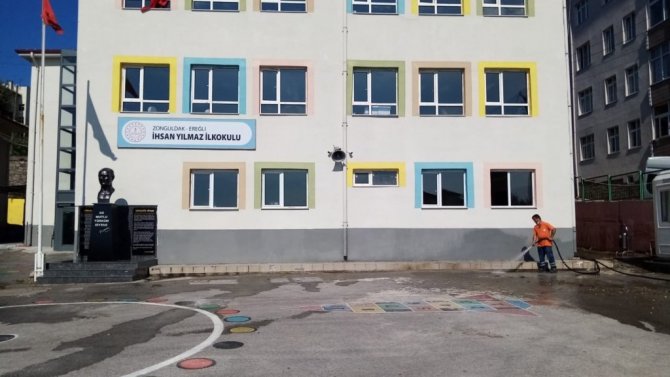 Zonguldak'ın Ereğli İlçe Belediyesi, 2021-2022 eğitim-öğretim dönemi öncesi ilçedeki okullarda yıkama, tırpan ve çevre düzenleme çalışması yaptı.