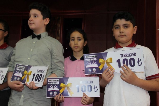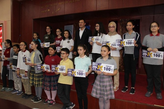 Yapılan konuşmaların ardından 17 ilçedeki ortaokullar arasında 100 temel eserden okuyarak sınıf kategorilerinde birinci olan 5, 6, 7 ve 8’inci sınıf öğrencisi 68 öğrenciye Eğitim-Bir-Sen’in katkılarıyla hazırlanan 100 TL’lik hediye çekleri Manisa İl Milli Eğitim Müdürü İsmail Çetin, İl Milli Eğitim Müdür Yardımcısı Necmettin Okumuş, Eğitim-Bir-Sen Manisa Şube Başkanı Mesut Öner, Eğitim-Bir-Sen Şube Başkan Yardımcısı Aziz Bulut tarafından takdim edildi.