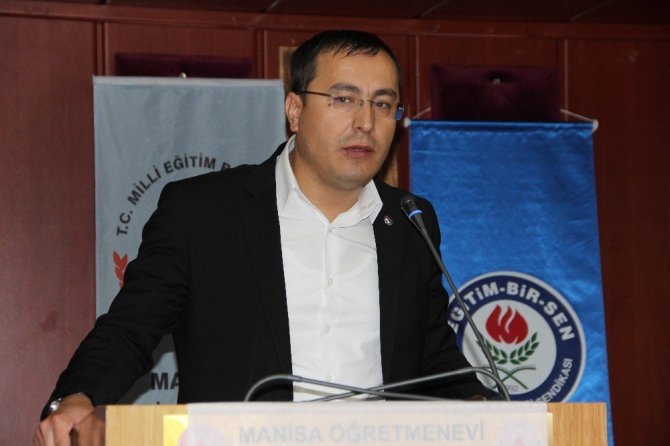 Saygı duruşunda bulunulması ve İstiklal Marşının okunmasıyla başlayan törende bir konuşma yapan Eğitim-Bir-Sen Manisa Şube Başkanı Mesut Öner, “100 yıllık geçmişimize baktığımız zaman okumayı bıraktığımızı ve okumadan uzaklaştığımızı görüyoruz. Halbuki bize gelen ilk emir ‘Oku’ idi. Oku emri üzerine çalışmalarımızı sürdürmemiz gerekiyordu. İlk emri oku olan bir dinin mensupları olarak her daim okuyarak güçleneceğimizi, bilinçleneceğimizi, yorumlama kabiliyetimizin artacağını unutmamalıyız. Bu projeye ortak olurken bizim hedefimiz kadim medeniyetimizin değerlerini kuşanmış, ilim, irfan ve hikmet sahibi bir gençlik yetiştirmekti. Bu amaçla bu projeye elimizden gelen maddi ve manevi desteği vermeye gayret ettik ve bundan sonrada inşallah bu tarz projelere her türlü desteği sağlayacağız. Bu noktada elimizi değil bedenimizi taşın altına koyacağız. Gönül coğrafyamızda kan ve gözyaşı eksik olmuyor. Son yüzyılda ciddi anlamda gönül coğrafyamız kan ağlıyor ve burada okumanın eksikliğini görüyor ve hissediyoruz. Gençlerimizi test ve tost arasına sıkıştırılmış bir nesil olarak yetiştirmeye çalıştığımızı gördük. Bunun üzerine Eğitim-Bir-Sen olarak cümleler kurduk, öğrencilerimizi çağın gereklerine göre yetiştirmemiz gerektiğini ve bu anlamda çağı okuyabilen, yorumlayabilen, irdeleyebilen, sorgulayabilen bir nesli, Asım’ın neslini arzuladık. Bu çerçevede her daim çalışmalarımızı sürdüreceğiz. Bu anlamda gençlere birkaç cümle söylemek istiyorum. Eğer güçlü bir devlet olmak istiyorsak, yeniden büyük ve güçlü Türkiye’yi ihya ve inşa etmek istiyorsak bunun ilk şartı okumaktan geçiyor. Okumalıyız ve karanlıktan kurtulmalıyız. Kelimenin gücünü elinde tutan kişiler, milletler, devletler çağı yakalıyor, teknolojide ilerliyor ve bulunduğu bölgede hatta dünyaya hakim bir şekilde çalışmalarını sürdürüyorlar. İnşallah bu çalışmalarla birlikte bizler de kadim medeniyetimizin değerleriyle donanmış bir nesil arzuluyoruz ve bu ışığı biz sizlerde görüyoruz” dedi.