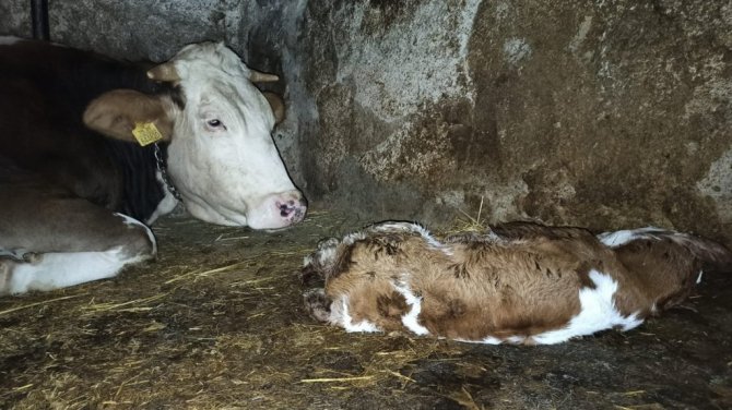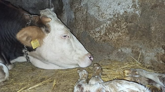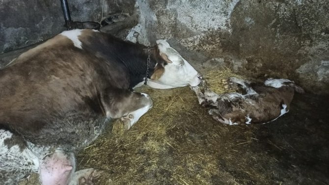 Mihalıççık ilçesine bağlı Yunus Emre Mahallesi'nde simental cinsi inek, 9 ay 10 günlük hamileliğinin ardından dün öğle saatlerinde sahibi Sibel Turgut'un yardımıyla bir erkek buzağı doğurdu. İlk bakışta sağlıklı olan buzağı bir süre sonra öldü. Buzağısının telef olması sonrası inek, ölen yavrusunu dakikalarca yalayıp kokladı. Uzun süre yerinden kalkmayan inek, saatlerce önündeki yeme ve suya dokunmadı.