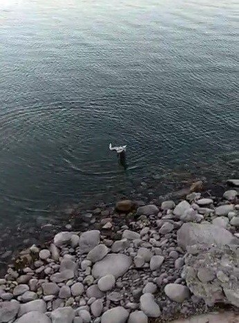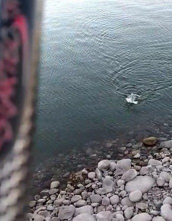 Olayı anlatan Fatih Yayar, "Balık tutmak için rapala diye adlandırdığımız maket balığı suya attığımda gök yüzünde yavru balık arayan martı anı inişe geçti. Benim yeme saldıracağını anlayınca hızlı hızlı çekmeye başladım. Ama martı daha hızlı bir şekilde yeme atak yapınca yemi kurtaramadım. Daha sonra martıyı kurtarmak için kıyıya kadar çekip kurtardım. Doğaya geri saldım" dedi.