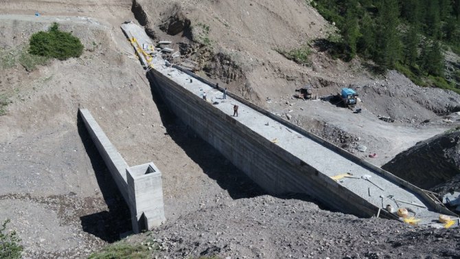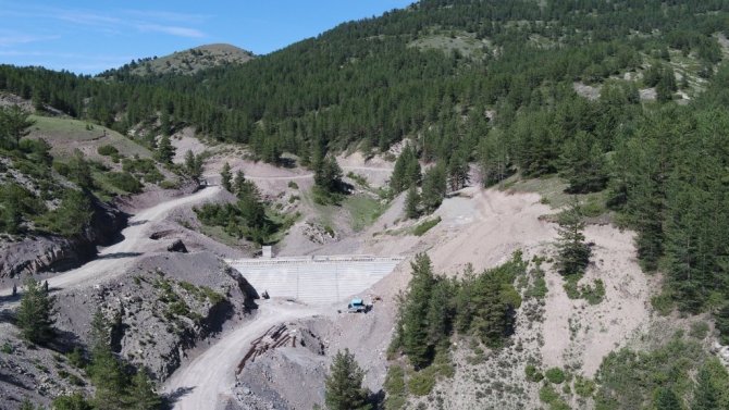 Beton ağırlıklı gövde tipinde inşa edilen gölette bugüne kadar yol, batardo, cebri boru imalatları ile gövdede yaklaşık 5 bin 500 metreküp beton imalatı tamamlanarak yüzde 90 seviyesinde gerçekleşmenin sağlandığını ifade eden Yıldız, "2021 yılı sonunda su tutmayı hedeflediğimiz gölette vana imalatları, dolusavak düşü havuzu imalatları ve kret üzeri korkuluk imalatlarına devam edilmektedir. Temelden yüksekliği 17 metre ve su depolama kapasitesi 0,11 milyon metreküp olan Erzurum Oltu Esenyamaç Göleti'nin tamamlanması ile 2021 yılı birim fiyatları ile ülke ekonomisine yıllık 250 bin TL katkı sağlanması hedeflenmektedir" ifadelerini kullandı.