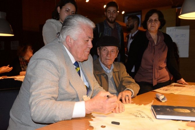 İZMİR (İHA) – “Ölü dillerin efendisi” ismiyle anılan kullanılmayan antik dillerin ustası Sümerolog Veysel Donbaz, Bergama Kültür Merkezinde bir konferans verdi, Bergamalılarla birlikte çivi yazısı kil tablet yaptı.