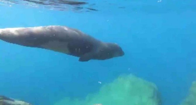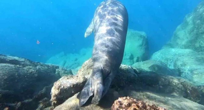 Ölü taklitti yapan Akdeniz foku görenleri şaşkına çevirdi