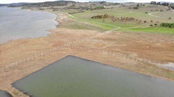 Ömerli Barajı'nda su içerisine İSKİ tarafından çekilen dikenli teller barajda suların çekilmesi ile gün yüzüne çıktı.