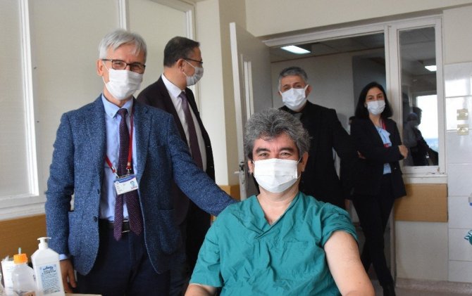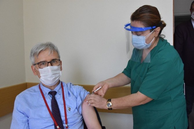 Samsun Ondokuz Mayıs Üniversitesi (OMÜ) Tıp Fakültesi Hastanesi'nde sağlık çalışanlarına Kovid-19 aşısı yapılmaya başlandı.
