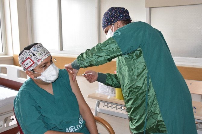 Hastanede sağlık çalışanlarına yönelik aşı uygulamaları devam ediyor.