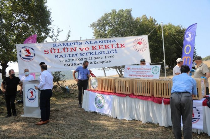 Tarım ve Orman Bakanlığı Doğa Koruma ve Milli Parklar Genel Müdürlüğü 11. Bölge Müdürlüğü ile Ondokuz Mayıs Üniversitesi arasında 27 Ağustos 2021 tarihinde iş birliği protokolü imzalandı. İmzalanan protokol ile birlikte 3 yıl boyunca kampüsün uygun alanlarına sülün ve keklik yerleştirilecek. Proje kapsamında ilk keklik ve sülünler bugün yapılan törenle birlikte doğaya salındı. OMÜ Rektörü Prof. Dr. Yavuz Ünal ve Doğa Koruma ve Milli Parklar Genel Müdürlüğü 11. Bölge Müdürü Halim Özdemir ile törene katılanlar 250 adet sülün ve 250 adet kekliği doğaya bıraktı.