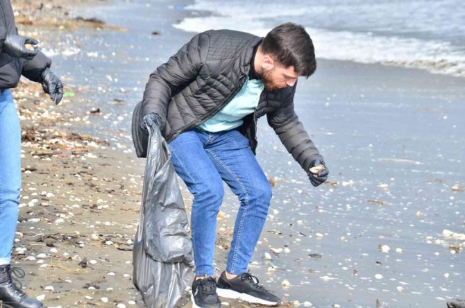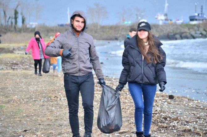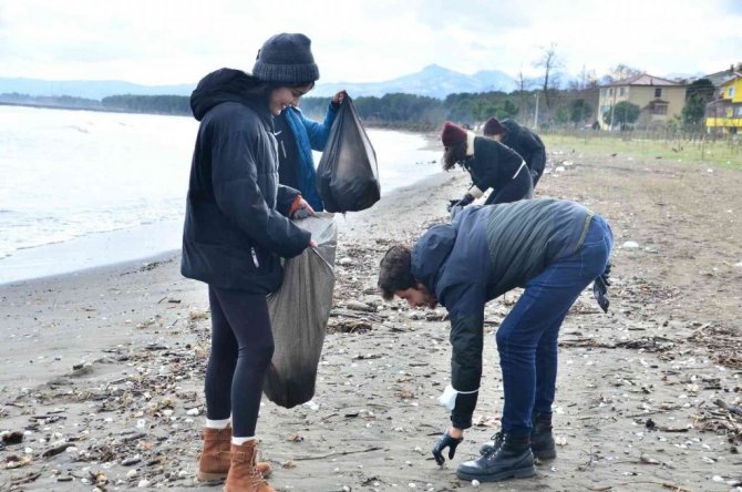 OMÜ’lü öğrencilerden eksi 2 derecede sahil temizliği