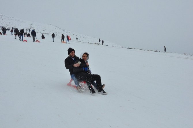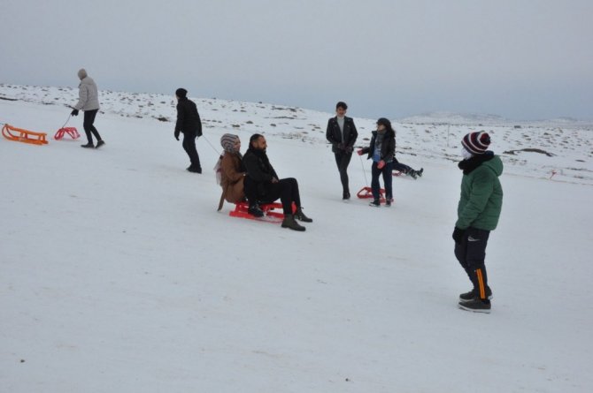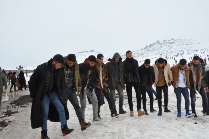 Şanlıurfa'da Güneydoğu Anadolu Bölgesi'nin tek kayak merkezi Karacadağ'da ziyaretçiler ilk önce kayak keyfi yaşadı, sonra ise halay çekti.